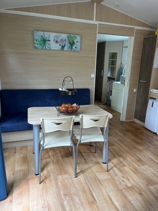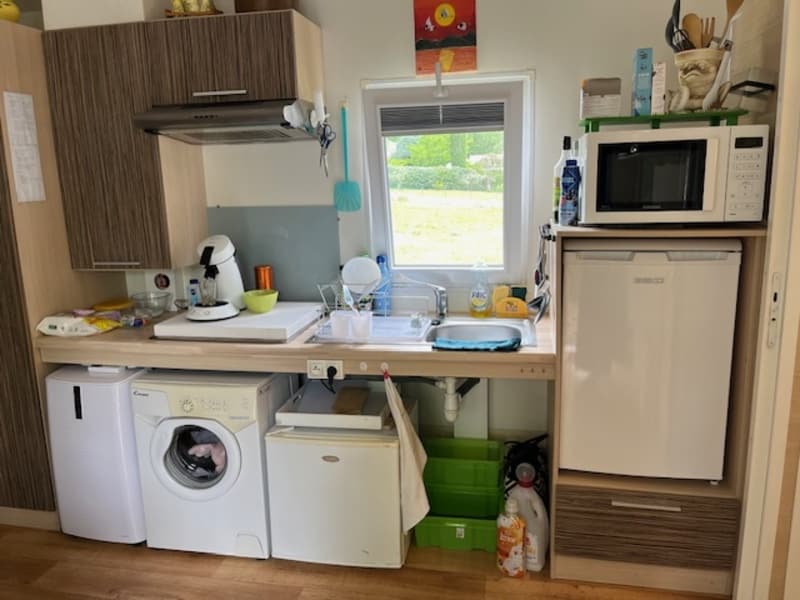 - 1 séjour / cuisine équipée avec frigo congélateur, 2 feux gaz, micro-onde et cafetière électrique et bouilloire, machine à laver