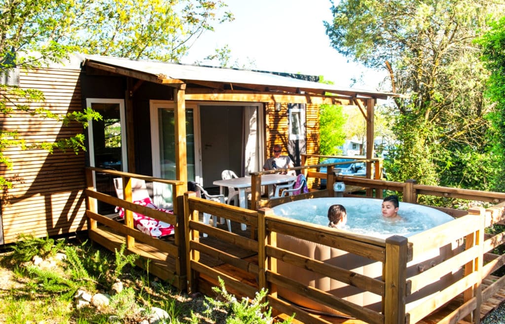 La location de mobil-home en Ardèche prend des airs de parenthèse luxueuse dans la gamme Premium. Nous comptons parmi les premiers campings du département à proposer des spas individuels en locatif, une exclusivité encore rare en Ardèche !